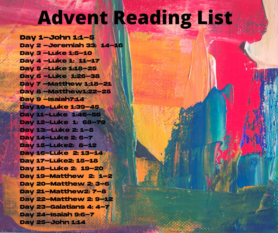 Here is an Advent Scripture Reading list I’ll be using for devotional posts starting tomorrow.