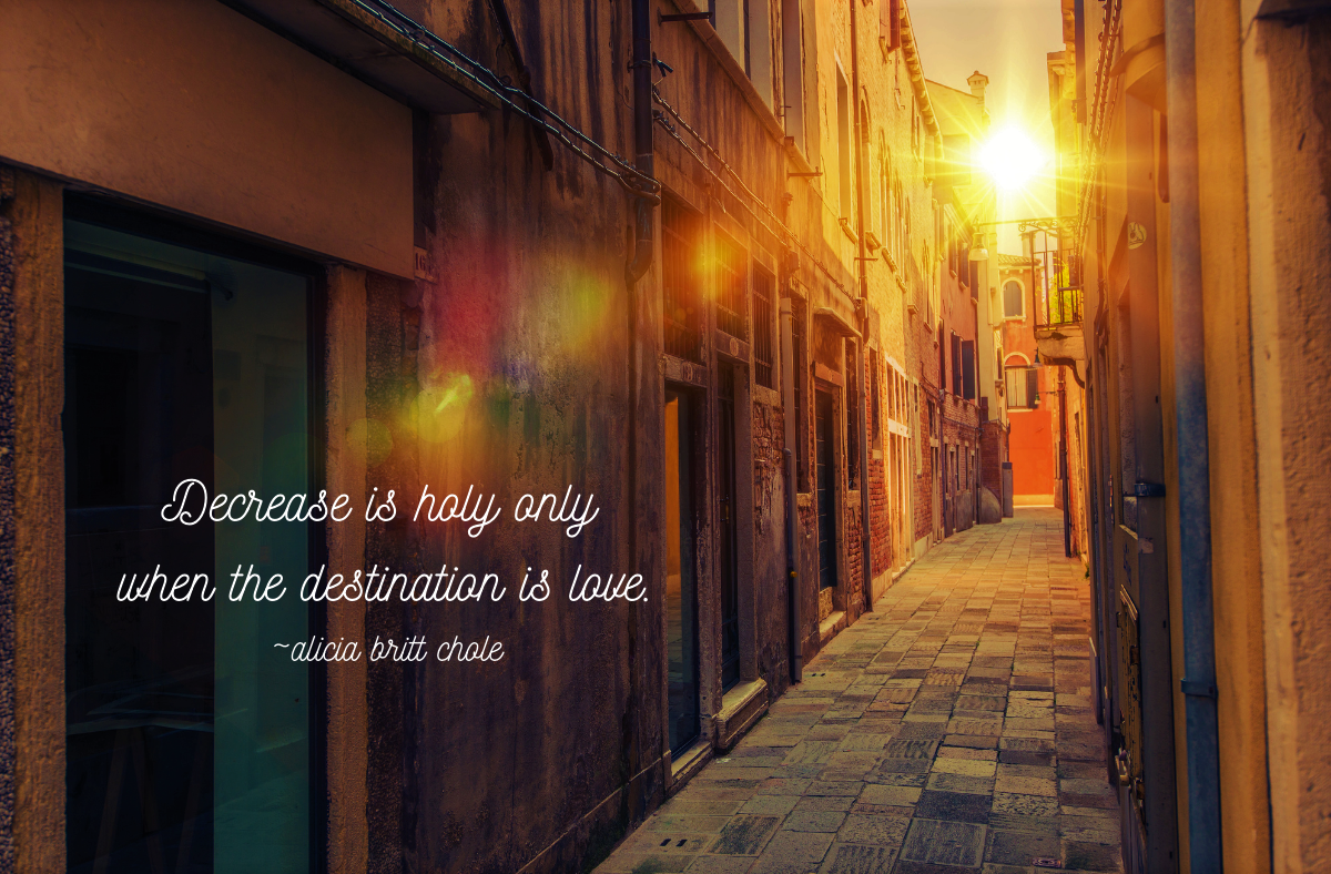 We began this journey forty days ago with the idea “Decrease is only holy when its destination is love” (Alicia Britt Chole).