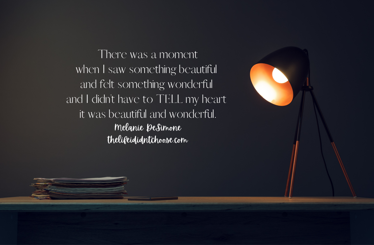 A few years ago, I had a grace-filled, heartwarming visit with another bereaved mama who came all the way from Maine just to hang out with me. And that was so, so good. As she and I shared over coffee and tea, shopping and meals, lounging and walking we found so many ways in which … Continue reading There’s A Lovely Moment When the Light Makes it Through Again
