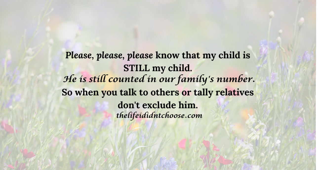 I get it-you have no clue what it’s like to say good-bye to a life you’ve birthed and fully expected to outlast your own. I don’t even imagine you can understand because I’m living it and still trying to figure it out. But there are some things you can do to help me walk this … Continue reading What Bereaved Parents Need From Extended Family