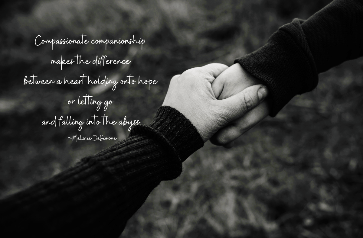 But often the only thing the hurting heart wants is acknowledgement, a moment of time, a face turned full into theirs, eye-to-eye and unafraid to remain alongside through the pain.
