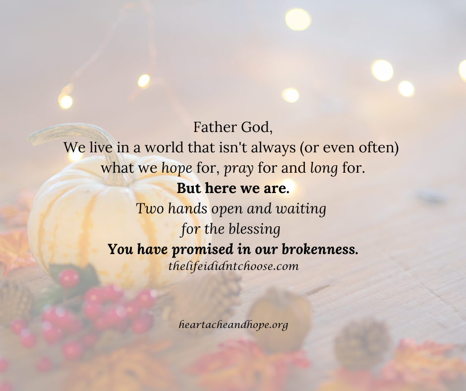 If you woke this morning feeling more broken than blessed, I see you. If you could care less about the bounty on the table and can only feel the barrenness in your heart, I know how you feel. Today doesn’t have to be any special way, my friend. Give yourself grace. Give yourself permission to feel … Continue reading Embracing Sorrow: A Thanksgiving Reflection