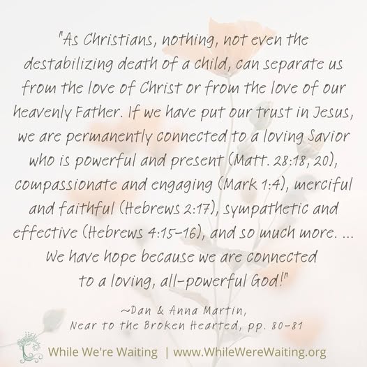 Child loss is not a hammer in the hands of God. He is not “teaching me a lesson”. He is not waiting to see if I’ll fail some kind of test. He knows I am made of dust.
