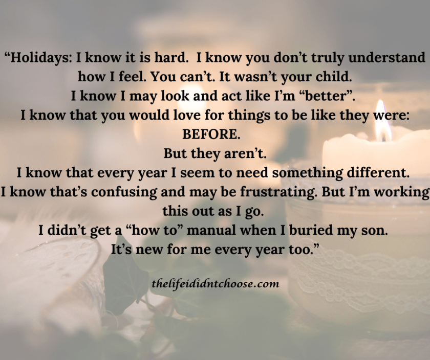Other broken hearted parents have shared that they actually felt stronger and better able to face Christmas in years past but this year is hitting differently.